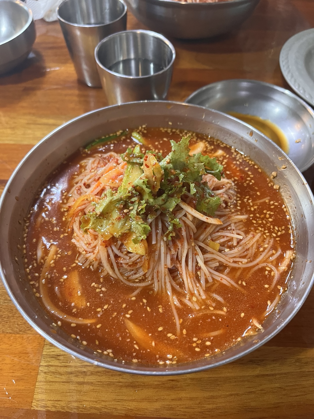 비빔국수를 시키면 따로 주는 멸치 육수가 있는데,